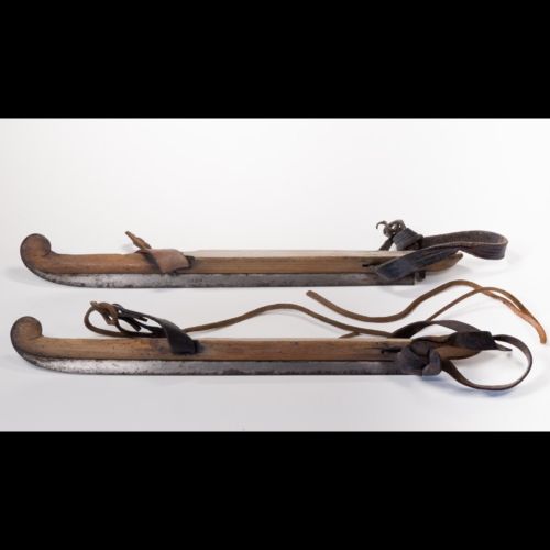 Title (ebay affiliate link): Antique Wooden Ice Skates Curved Curl Tip Dutch Folk Art Leather Straps Signed