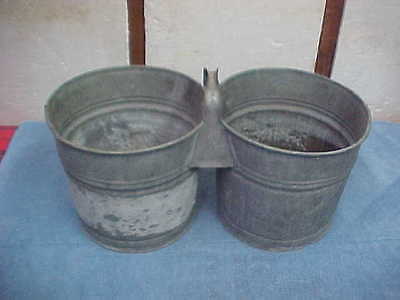 Vintage Primitive Galvanized Metal Double Bucket Pail Garden Planter