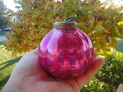 ANTIQUE KUGEL? PINK CHRISTMAS ORNAMENT HEAVY RIBBED CRACKLE GLASS GERMAN *NICE*