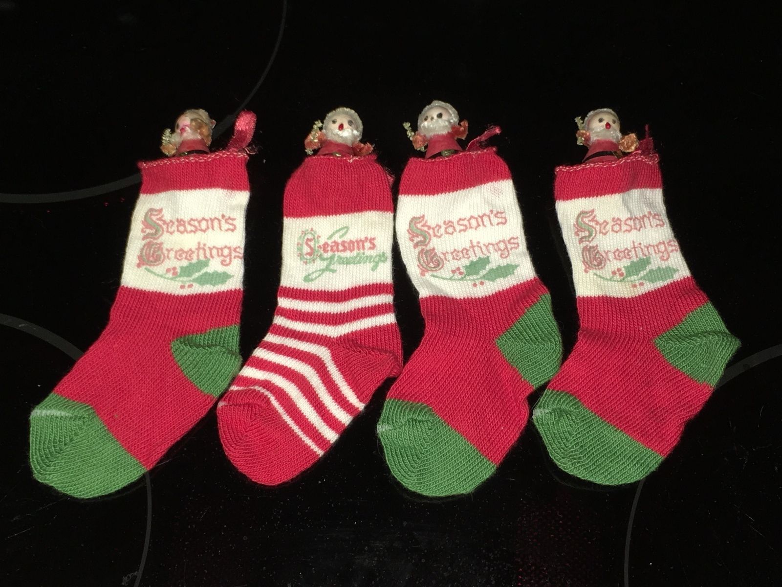 Title (ebay affiliate link): Vintage Christmas Ornaments, Tiny Elves/Santa & Stockings Lot of 8 made in Japan