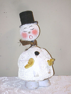 Vintage Paper Mache Bobble Head Snowman Christmas Candy Container Germany
