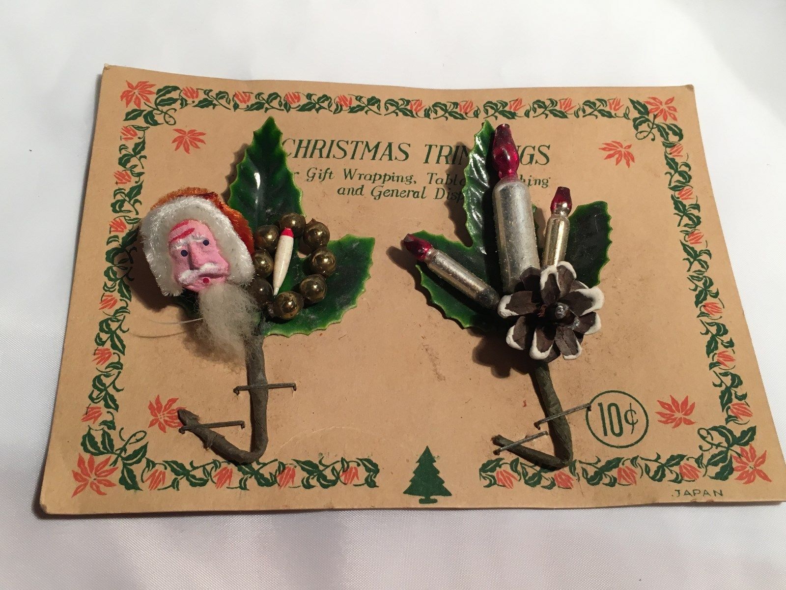 Title (ebay affiliate link): Vintage JAPAN Christmas Trimming Decoration Clay Face Santa Mercury Glass
