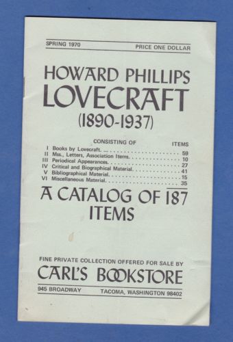 Title (ebay affiliate link): HOWARD PHILLIPS LOVECRAFT : A catalog of 187 items - 1970