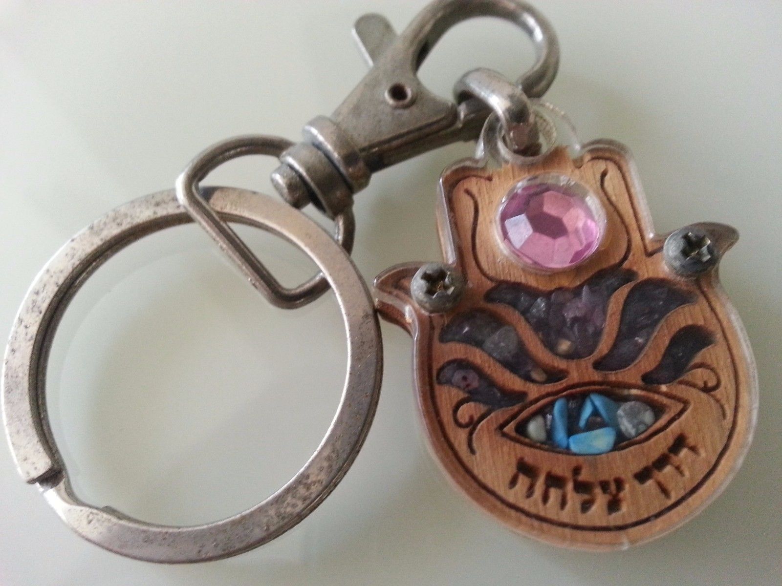 Title (ebay affiliate link): VTG Keychain Amulet Hamsa Hebrew Prayer for the Road Judaica Israel
