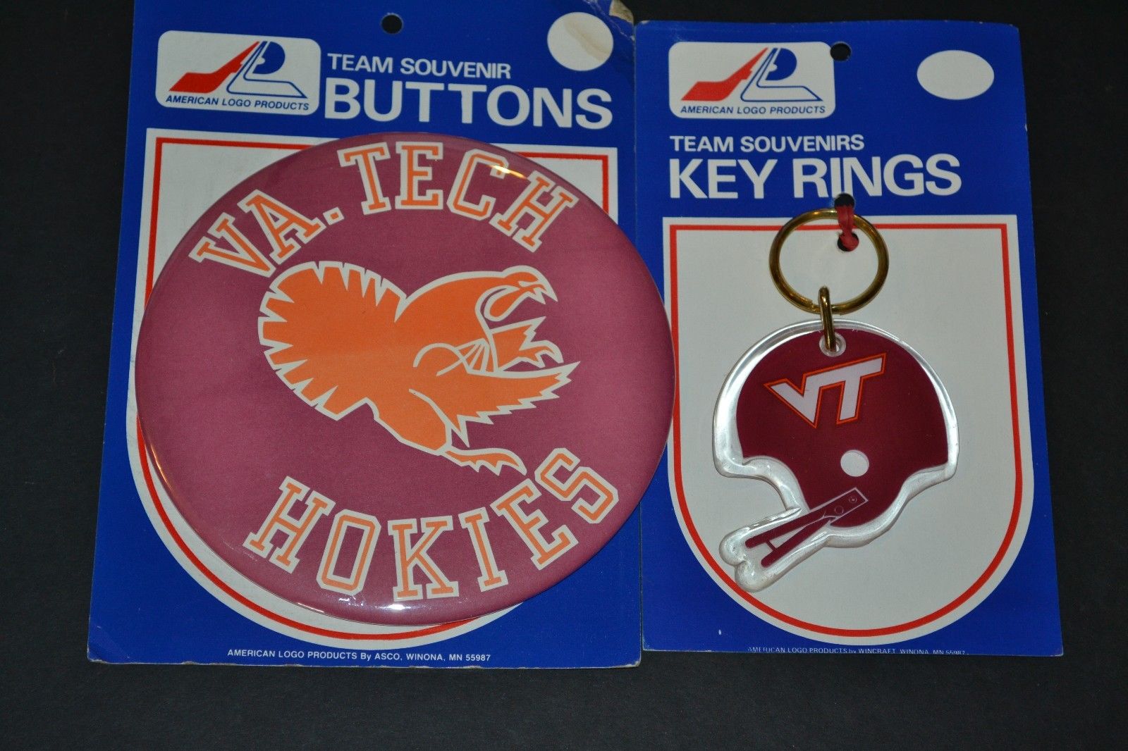 Vintage 1980's VIRGINIA TECH HOKIES 1 Giant 6" Pinback Button & Acrylic Keychain