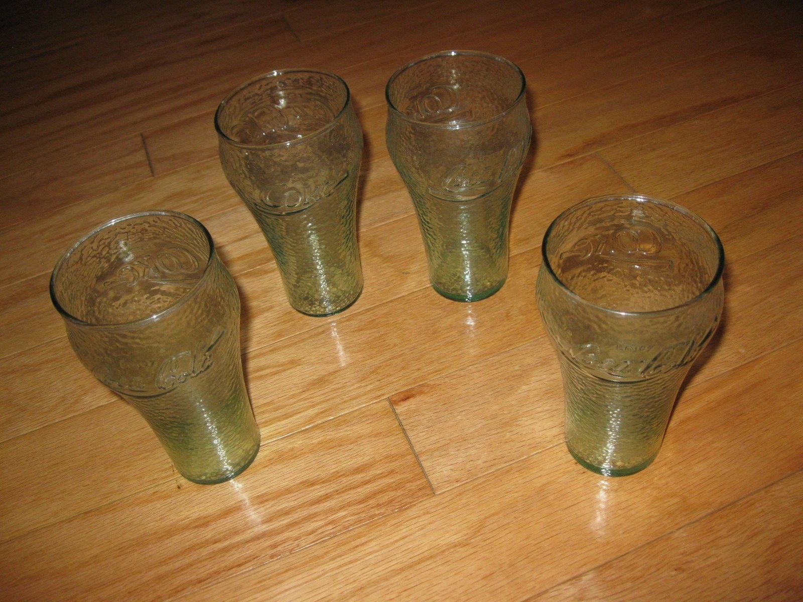 Title (ebay affiliate link): Lot of 4 Vintage Pebble Texture Green Coca Cola Glass 6" Tall Co