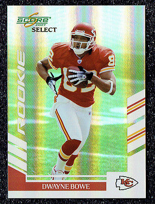 Title (ebay affiliate link): 2007 Score Select #336 Dwayne Bowe Rookie #/599 Single Parallel Chiefs RC NFL RC