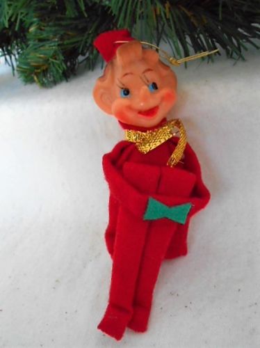 Title (ebay affiliate link): VINTAGE CHRISTMAS KNEE HUGGER ELF ON SHELF PIXIE ORNAMENT DECORATION ~ RED SUIT