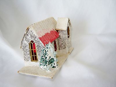 Title (ebay affiliate link): 1940s Christmas (putz) house (Church)-cellophane windows-sponge tree-Japan