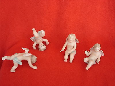 ANTIQUE GERMAN SET OF 4 PORCELAIN CUPIDS MINT CONDITION-MARKED "KW80159B"-RARE