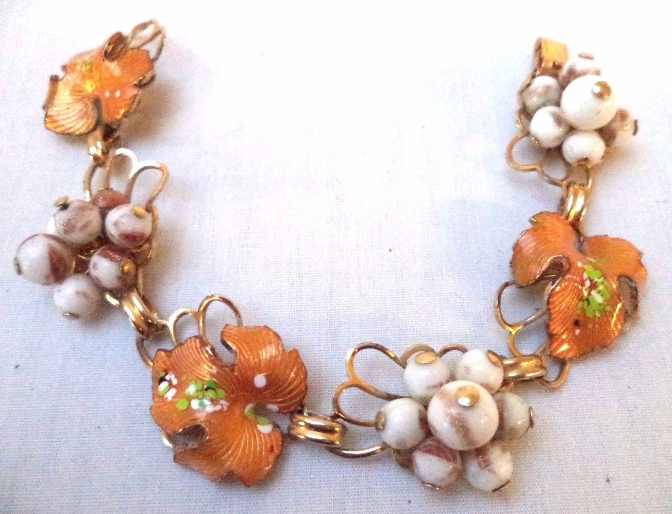 Title (ebay affiliate link): STUNNING VINTAGE ESTATE GOLD TONE FLUSS MILK GLASS FLOWER BRACELET!!! 2580T
