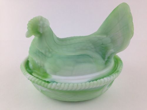 Title (ebay affiliate link): Green Marble Swirl Milk Glass Hen On Nest 7.5" Covered Dish