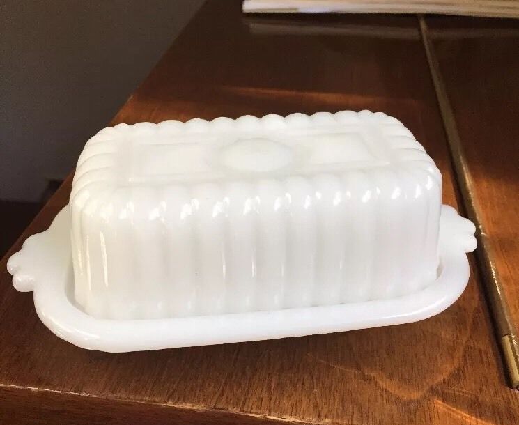 Title (ebay affiliate link): VINTAGE HAZEL ATLAS RIBBED MILK GLASS SMALL BUTTER DISH (E8)