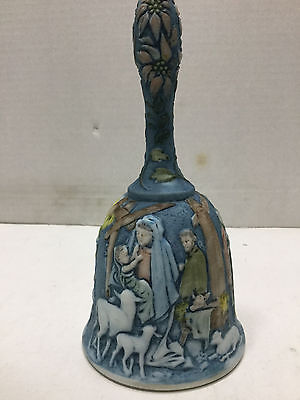 Vintage Fenton Hand Paint Signed White Satin Milk Glass Christmas Nativity Bell