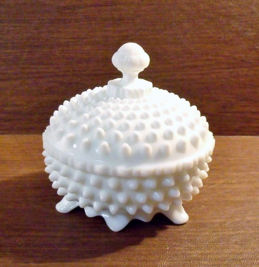 Fenton HOBNAIL MILK GLASS 3 Toed 6" Candy Dish w/Lid MINT