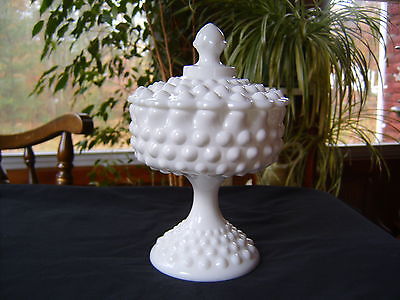 Title (ebay affiliate link): FENTON MILK GLASS HOBNAIL PEDESTAL COVERED COMPOTE 8 1/2" INCHES TALL