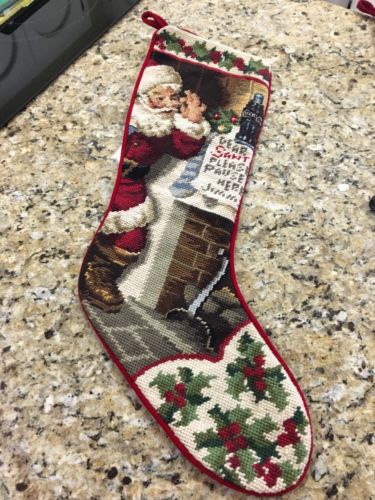 Title (ebay affiliate link): Coca Cola Santa Fireplace List 1997 Needlepoint Christmas Stocking 22"