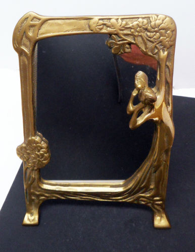 Vintage ART NOUVEAU Style BRASS LADY Footed Vanity MIRROR