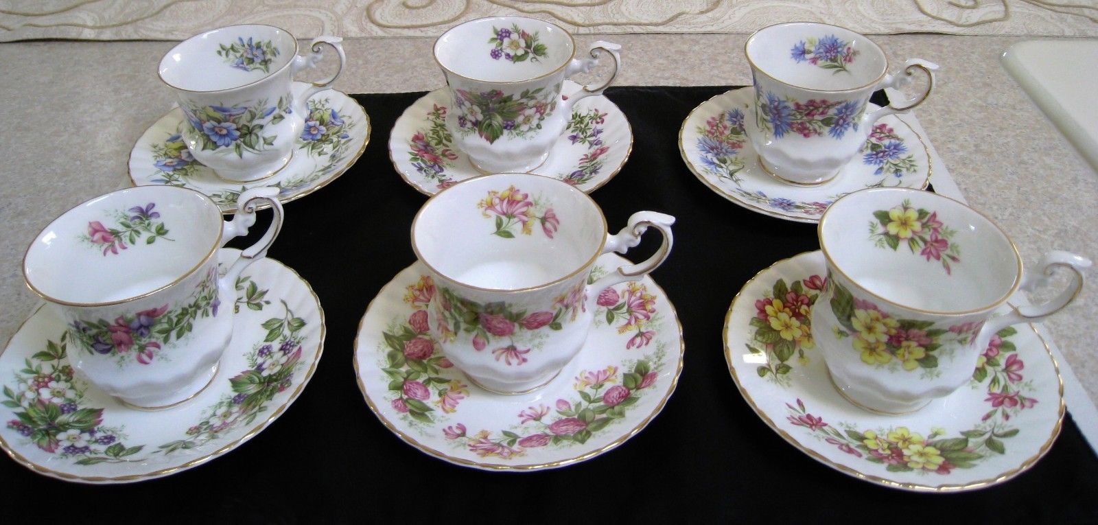Title (ebay affiliate link): VINTAGE LOT OF 6 ROSINA FINE BONE CHINA WILD FLOWERS TEA CUP SETS-ENGLAND