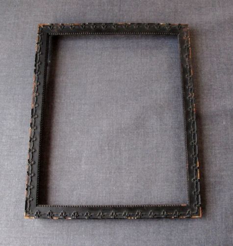 ANTIQUE VICTORIAN BLACK DECORATED GESSO WOODEN PICTURE FRAME