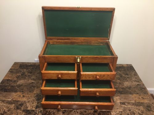 Antique Wood Mechanic Tool Chest With Drawers Jewelry Box