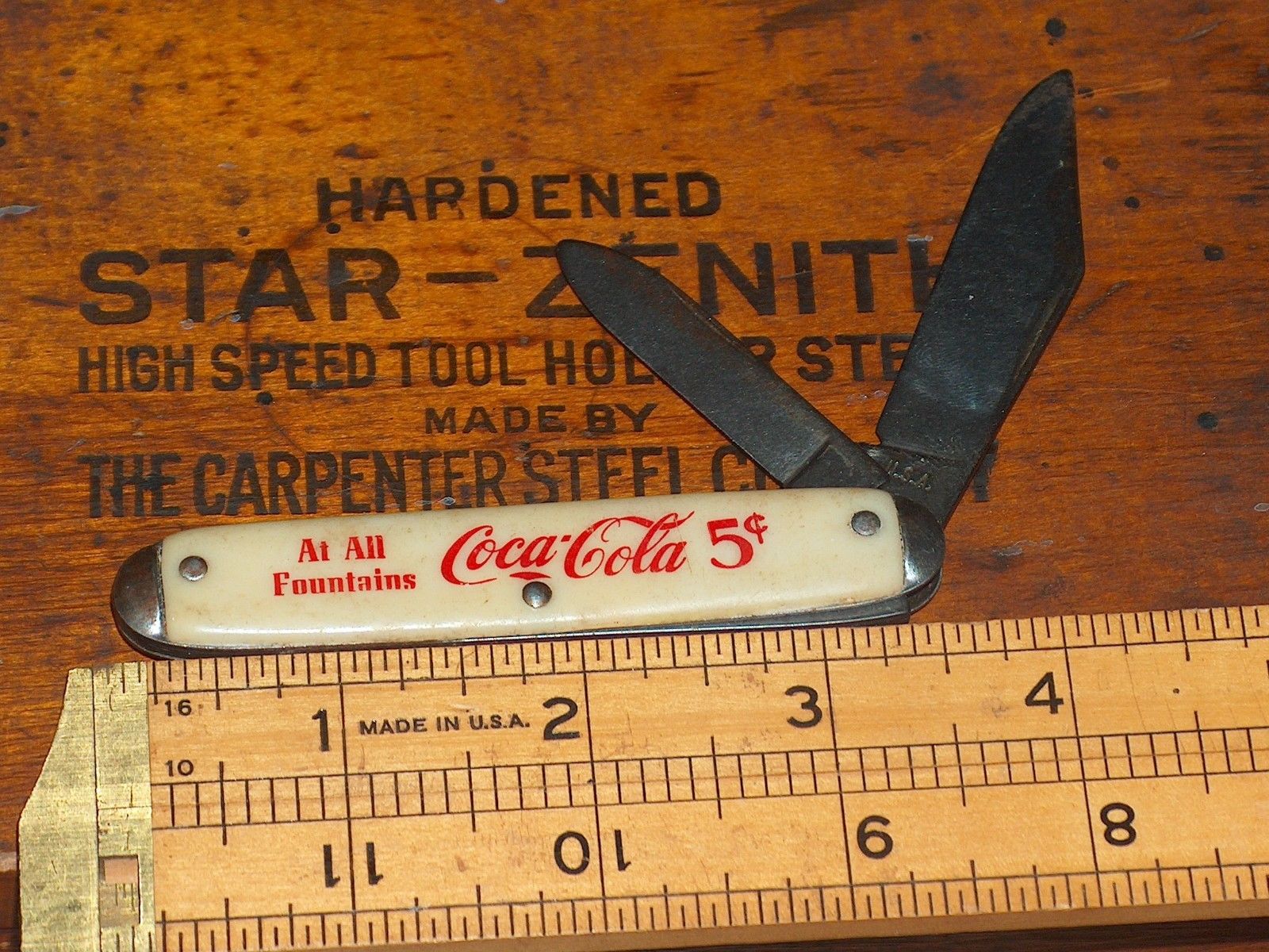 VINTAGE COCA COLA AT THE FOUNTAINS 2 BLADE FOLDING KNIFE USA