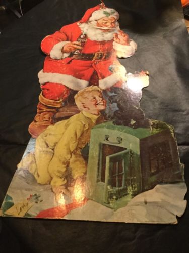Title (ebay affiliate link): Large Vintage Coca Cola Cardboard Advertising Stand-Up Sign Santa Christmas Pupp