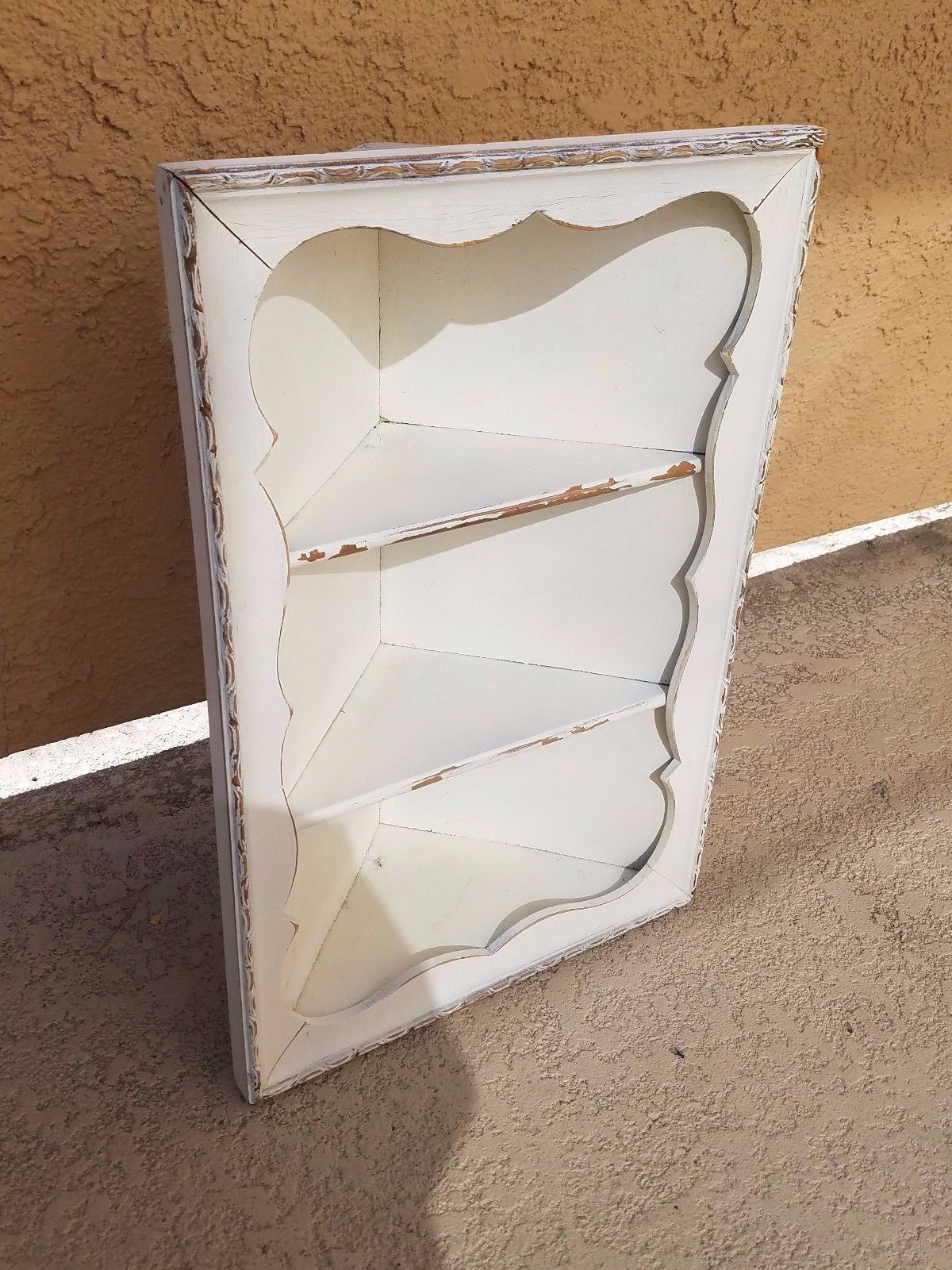 Vintage Shabby Cottage Style Chic Corner 3 Shelf White Small Bathroom Kitchen