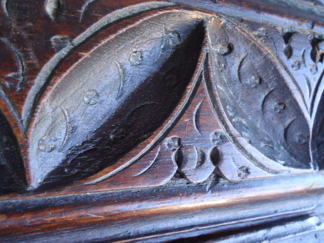 TWO 17TH CENTURY OAK DEEP CARVED RAILS