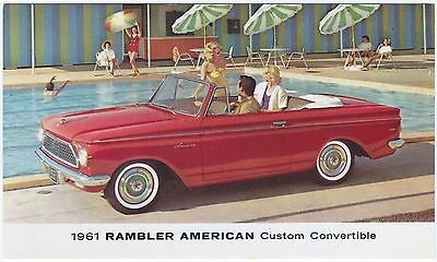 Title (ebay affiliate link): 1961 RAMBLER AMERICAN Convertible Original Dealer Promotional Postcard UNUSED Ex