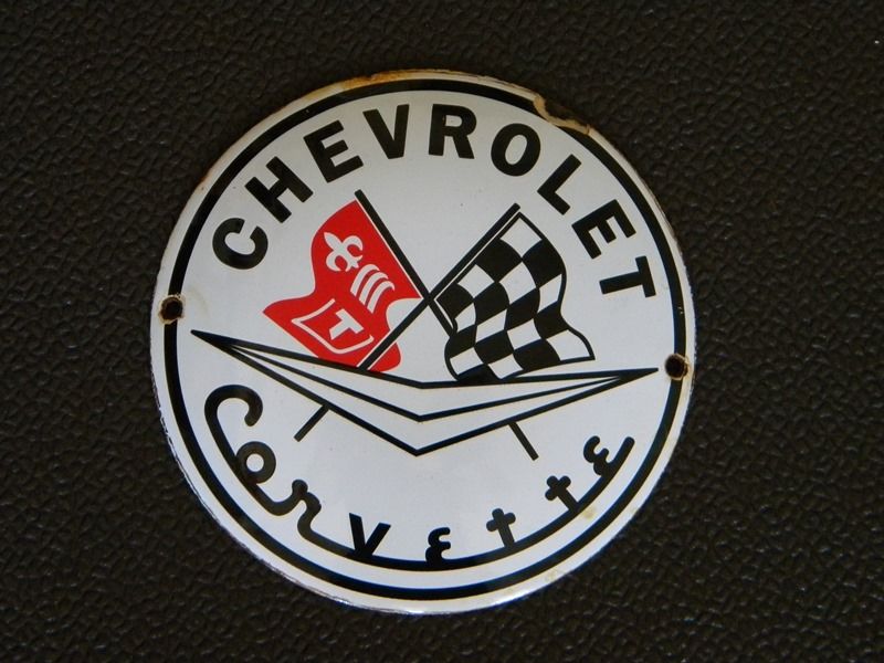 OLD CHEVROLET CORVETTE PORCELAIN SIGN ~4-3/4" GAS OIL SPORTS CAR STINGRAY C7 C1