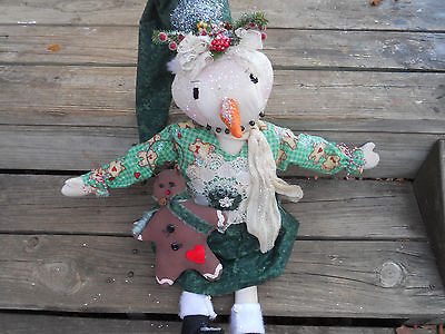 Primitive Christmas Holiday Snowman Snow Girl Snow Lady Ornie Doll Decor