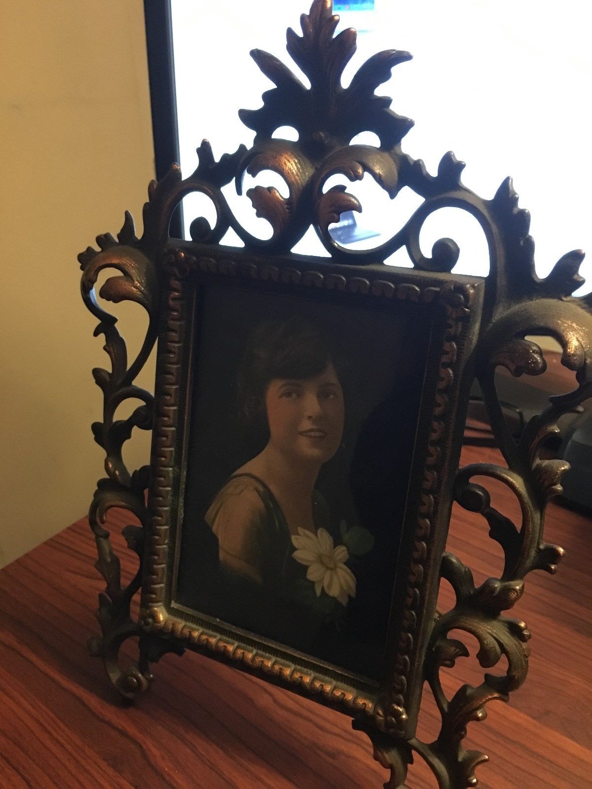Antique Cast Iron Floral Victorian Frame with Back Stand
