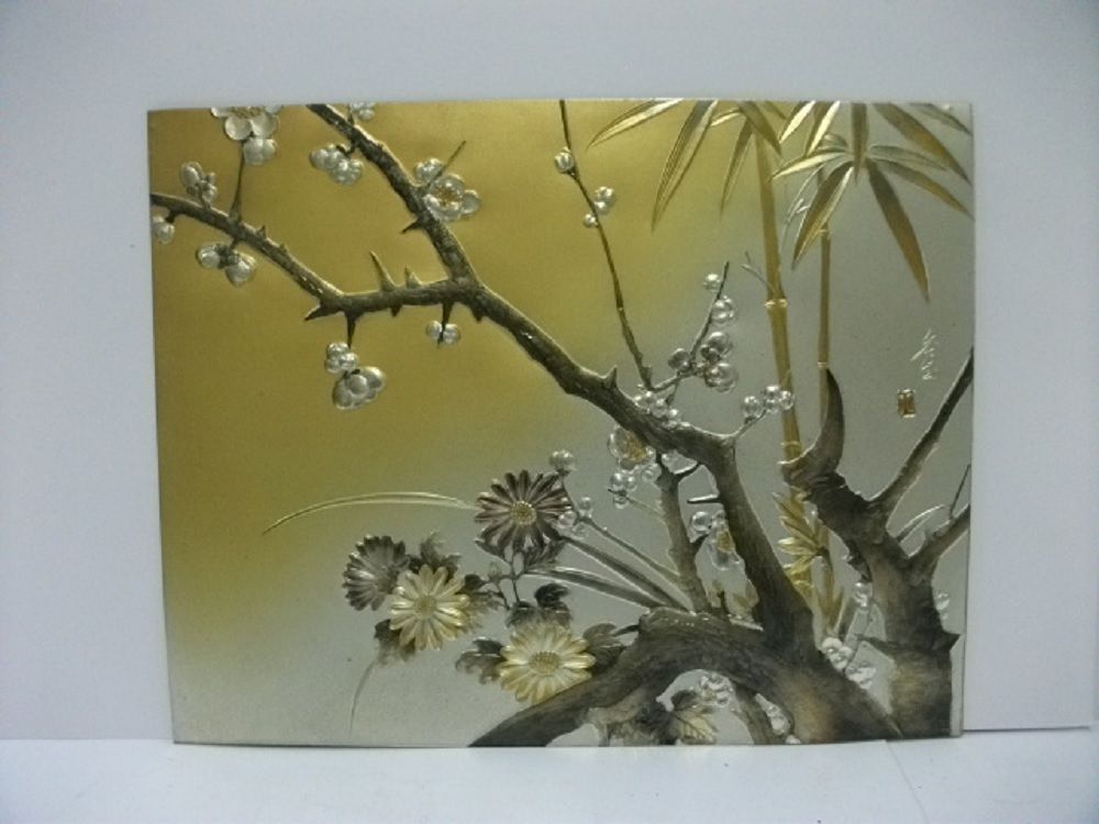 Title (ebay affiliate link): Pure gold, pure silver, a metal engraving product. Plum tree. SHUUGYOKU's work