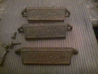 Three Hamilton Mfg. Co. Letter Type Drawer Iron Pull Handle