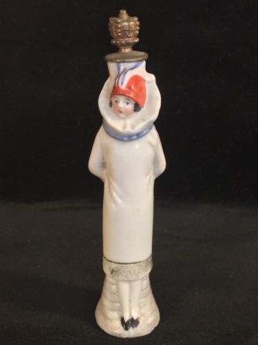 ANTIQUE FIGURAL PIERROT FLAPPER CROWN TOP PERFUME BOTTLE, GERMANY