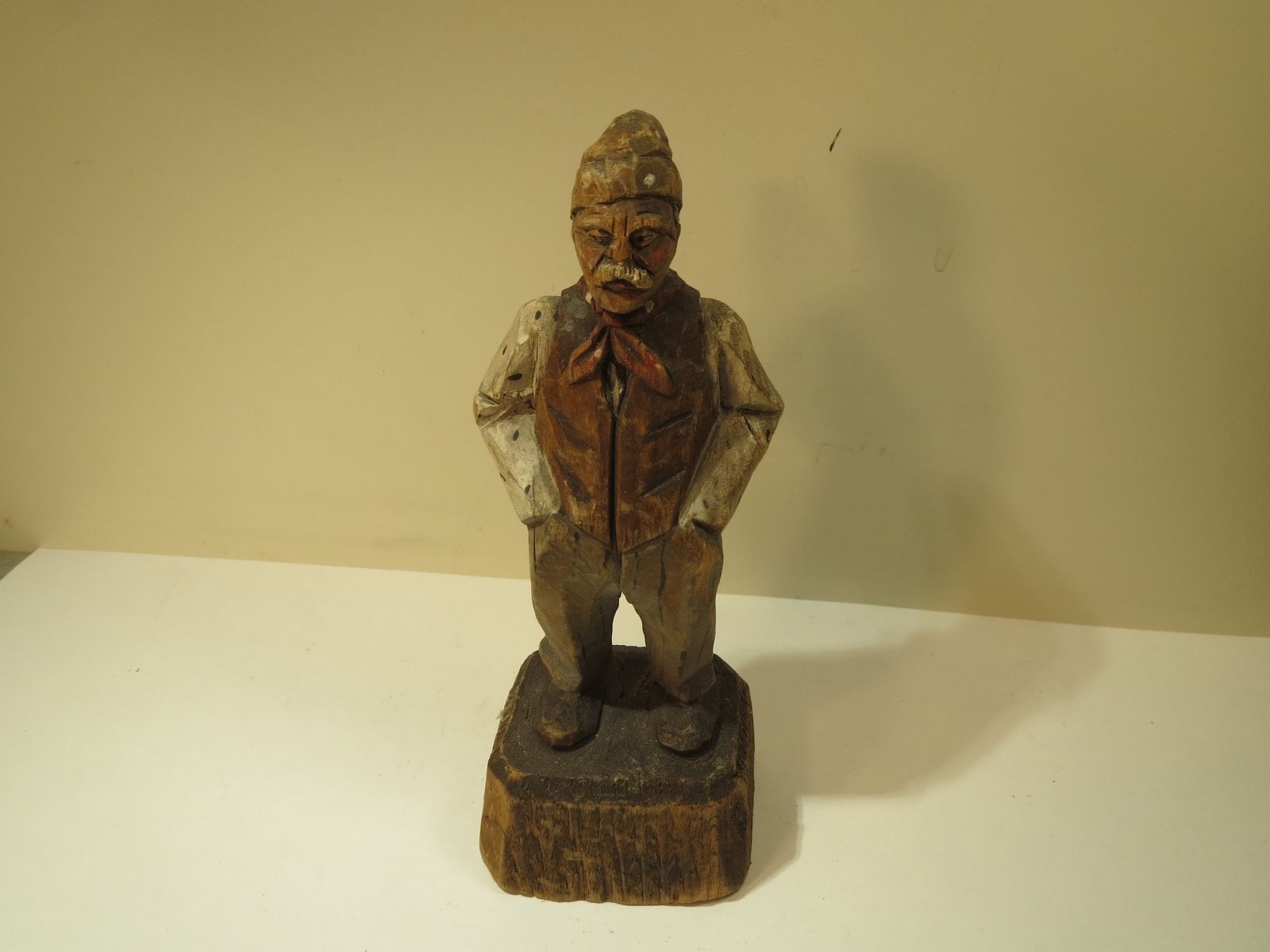 Vintage Wood Carving Scandinavian Handcrafted Man Red Scarf