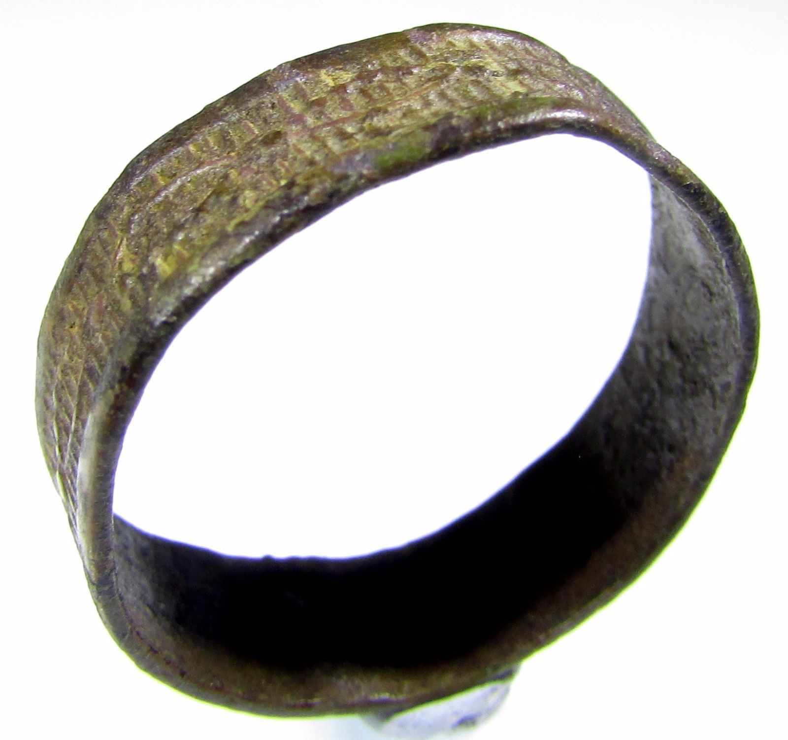 Title (ebay affiliate link): RARE POST MEDIEVAL BRONZE DECORATED WEDDING BAND - WEARABLE - 1661