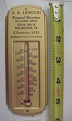 VINTAGE FUNERAL HOME THERMOMETER, J.A. LEWICKI PHILA PA