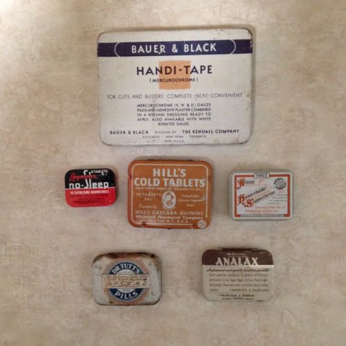 Title (ebay affiliate link): Vintage Medical Drug Tin Collection - 6 Tins - Hills -Tutt's - Anusol - Analax