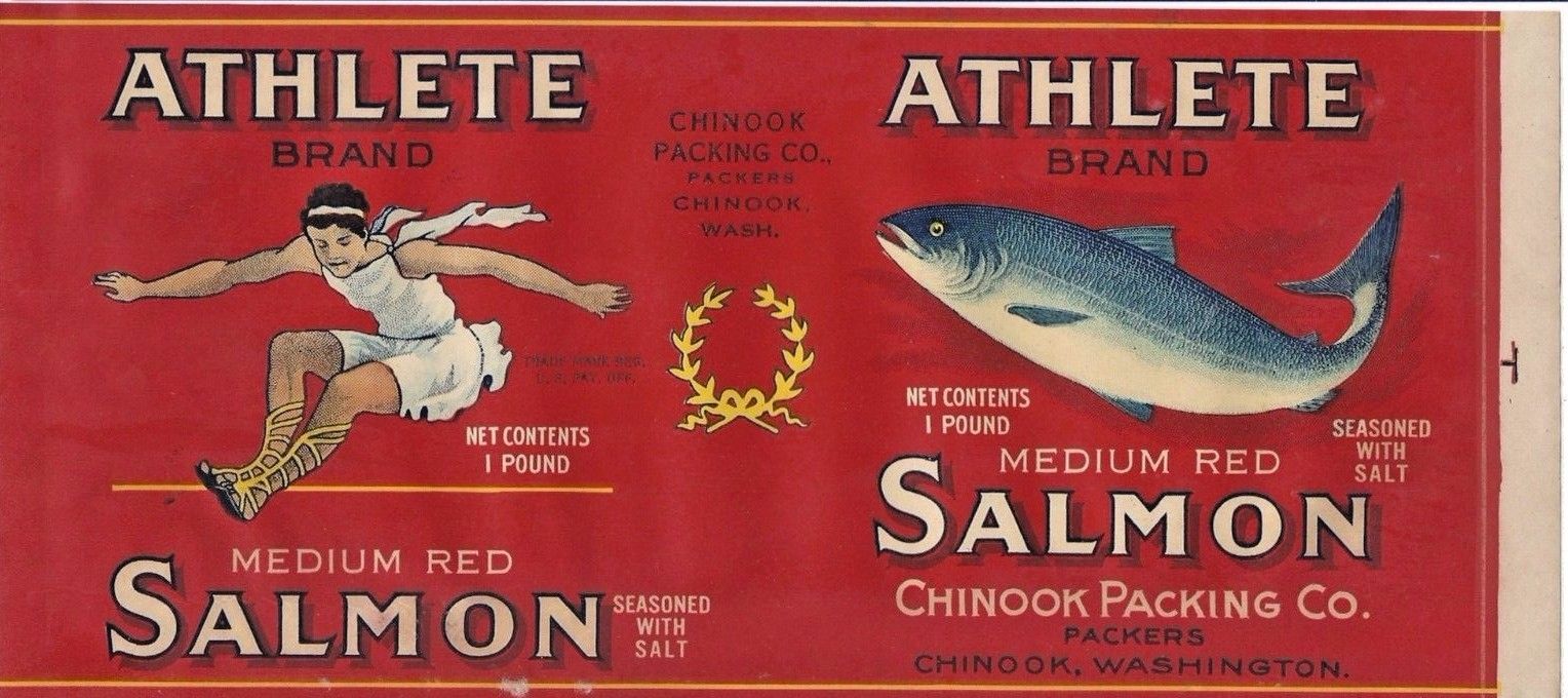 Title (ebay affiliate link): 1920's Can Label- Athlete Brand Salmon, Chinook, Washington. 4 1/4 x 9 3/4.