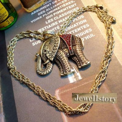 Title (ebay affiliate link): Classic Antique Elephant Chain Necklace Vintage Ruby A+