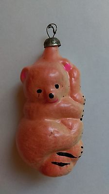 Antique CHRISTMAS glass ornament BEAR CUB on BIRCH