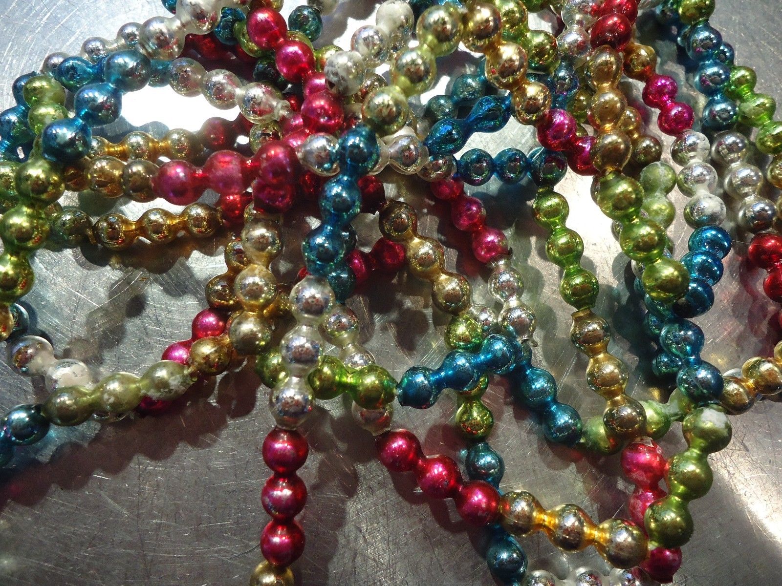 Title (ebay affiliate link): Vintage Mercury Glass Beaded Christmas Garland Multi-Colored Approx. 6'