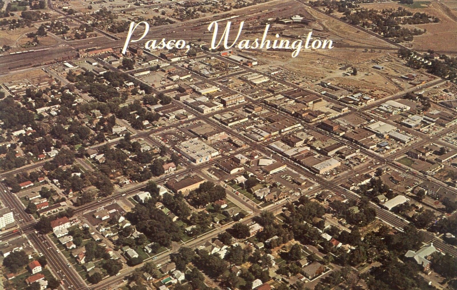 Pasco Washington, 1950's postcard, Aerial view