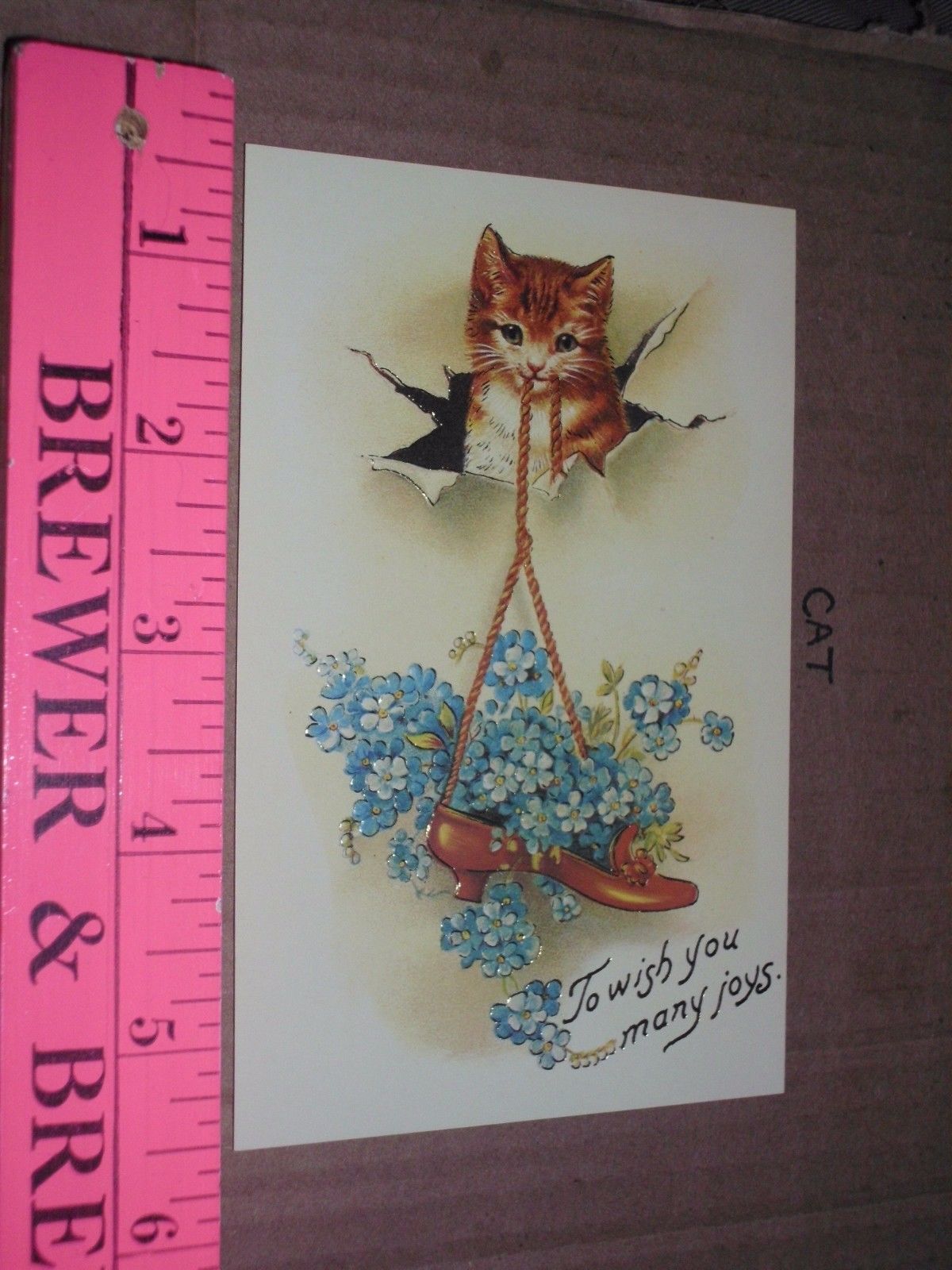 Title (ebay affiliate link): Cat Kitten Cute Baby To wish you many Joys Emossed Rope Flower Shoe Christmas