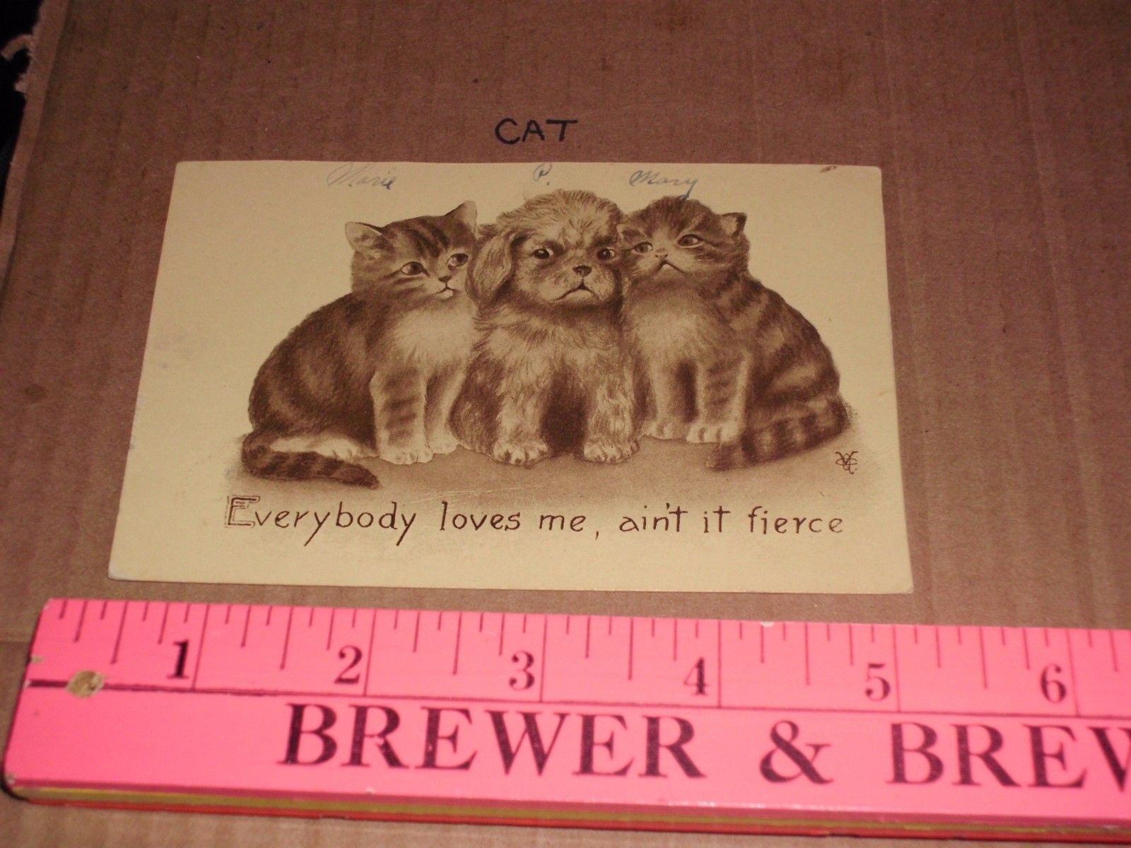 Title (ebay affiliate link): Cat kitty Baby Everybody Loves Me Ain't It Fierce Dog Puppy Drawing art signed