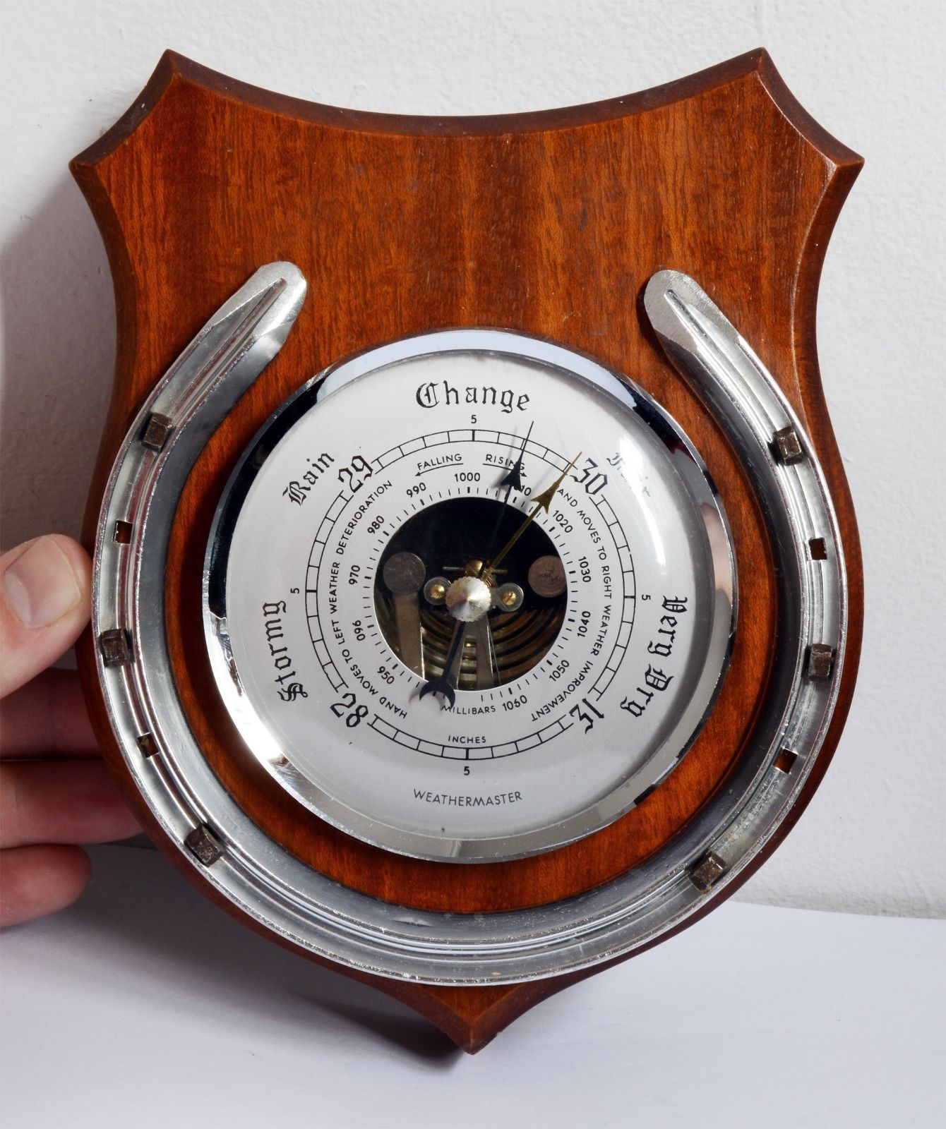 Title (ebay affiliate link): Charming Vintage Horseshoe Aneroid Wall Barometer with Wooden Surround - Working