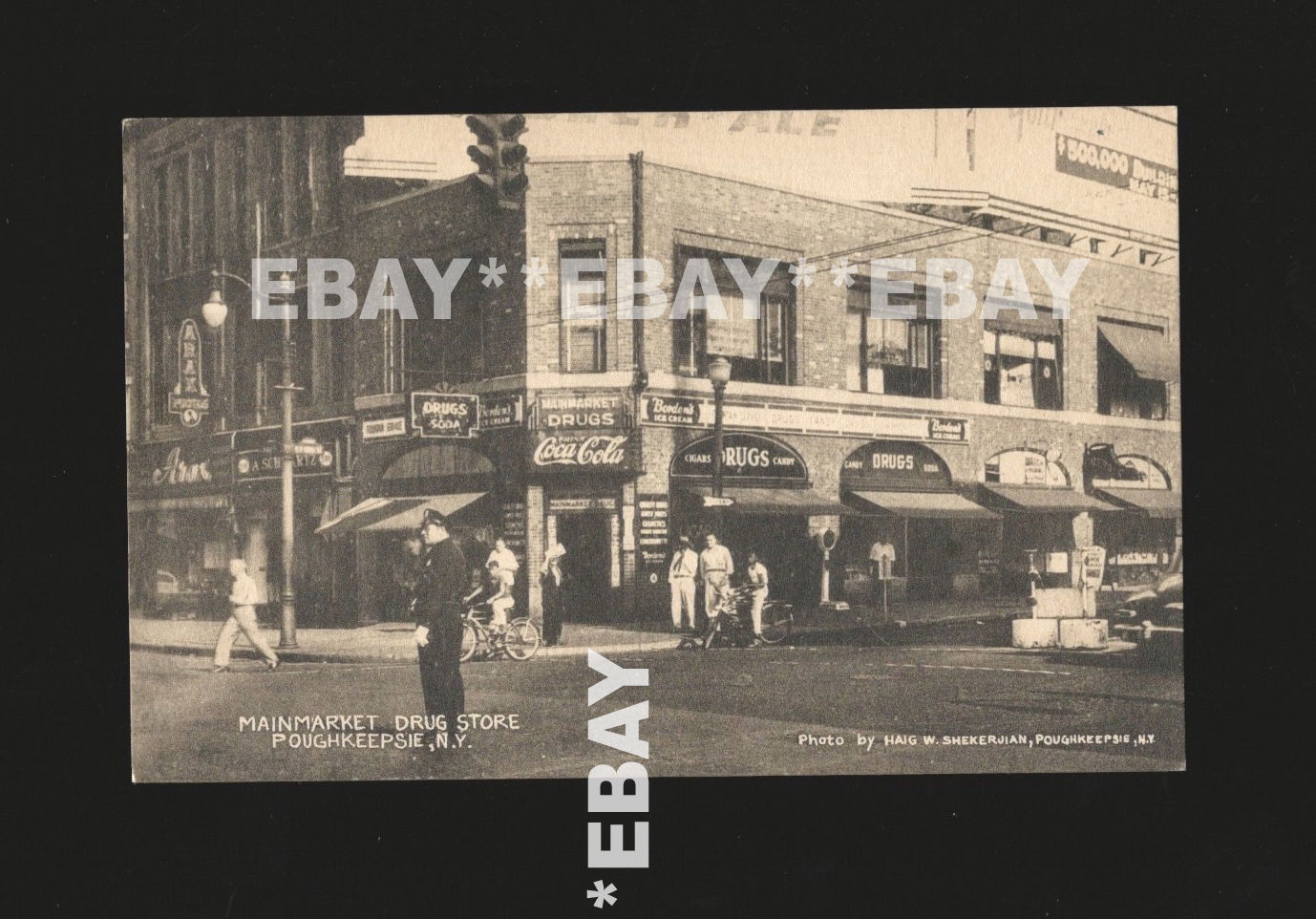 Title (ebay affiliate link): Poughkeepsie NY - Main Market Drug Store- Coca-Cola Sign Vintage Postcard