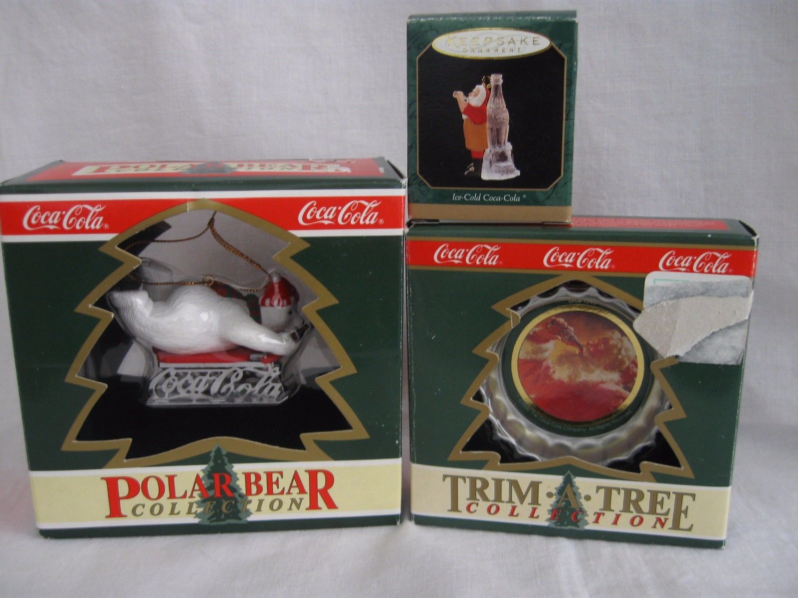 Title (ebay affiliate link): Lot Of Three 1990's Coca-Cola Theme Christmas Ornaments In Boxes